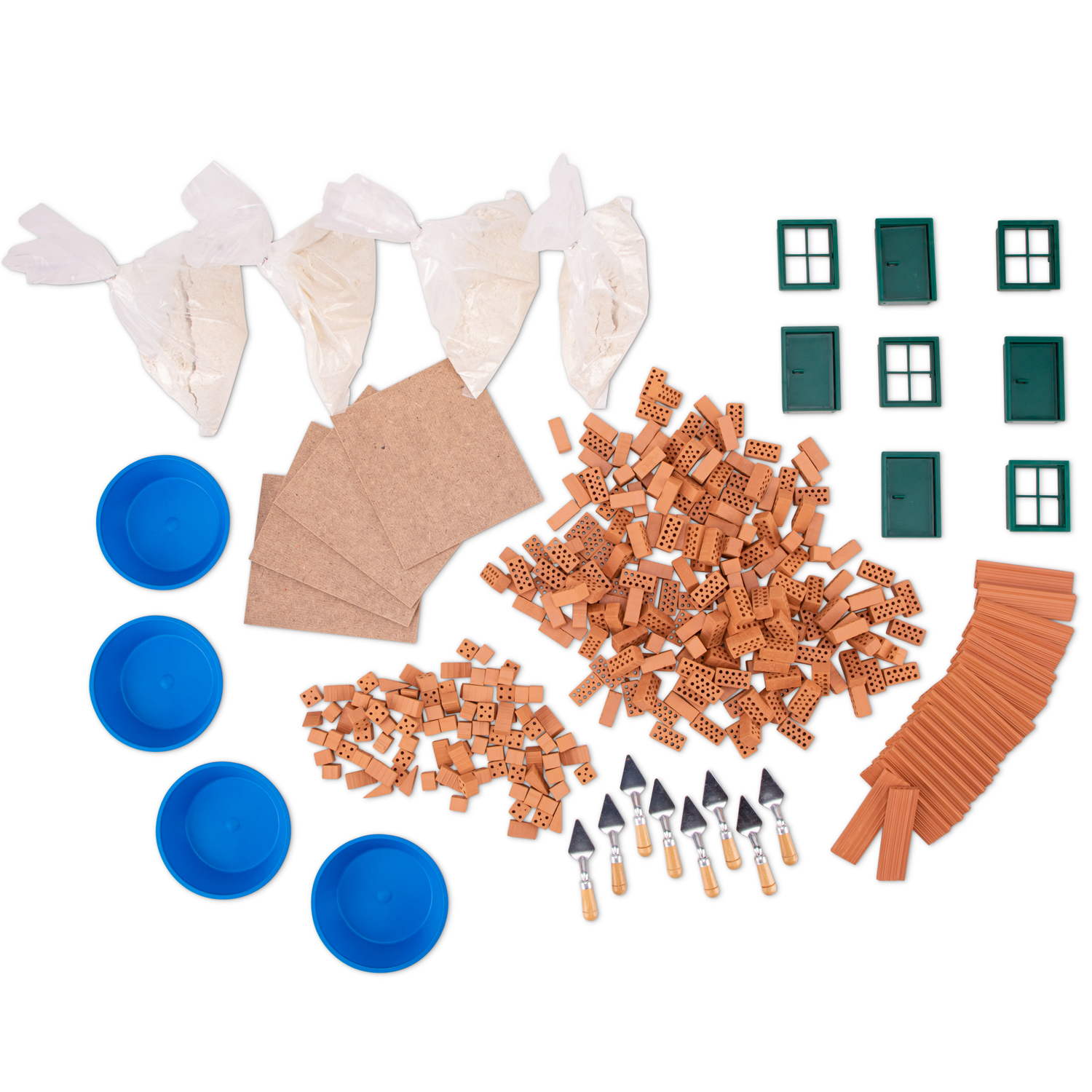 Including 4x cement bowls, 8x trowels, 4x windows, 4x doors, water- soluble cement and detailed instructions.
