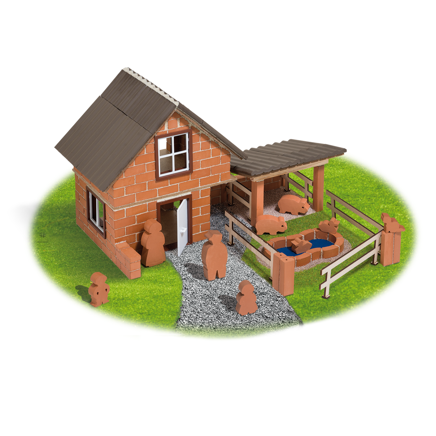 Met echte miniatuur bakstenen, wateroplosbare mortel, kunststof ramen en een houten weidehek metsel je het perfecte thuis voor al je boerderijdieren.