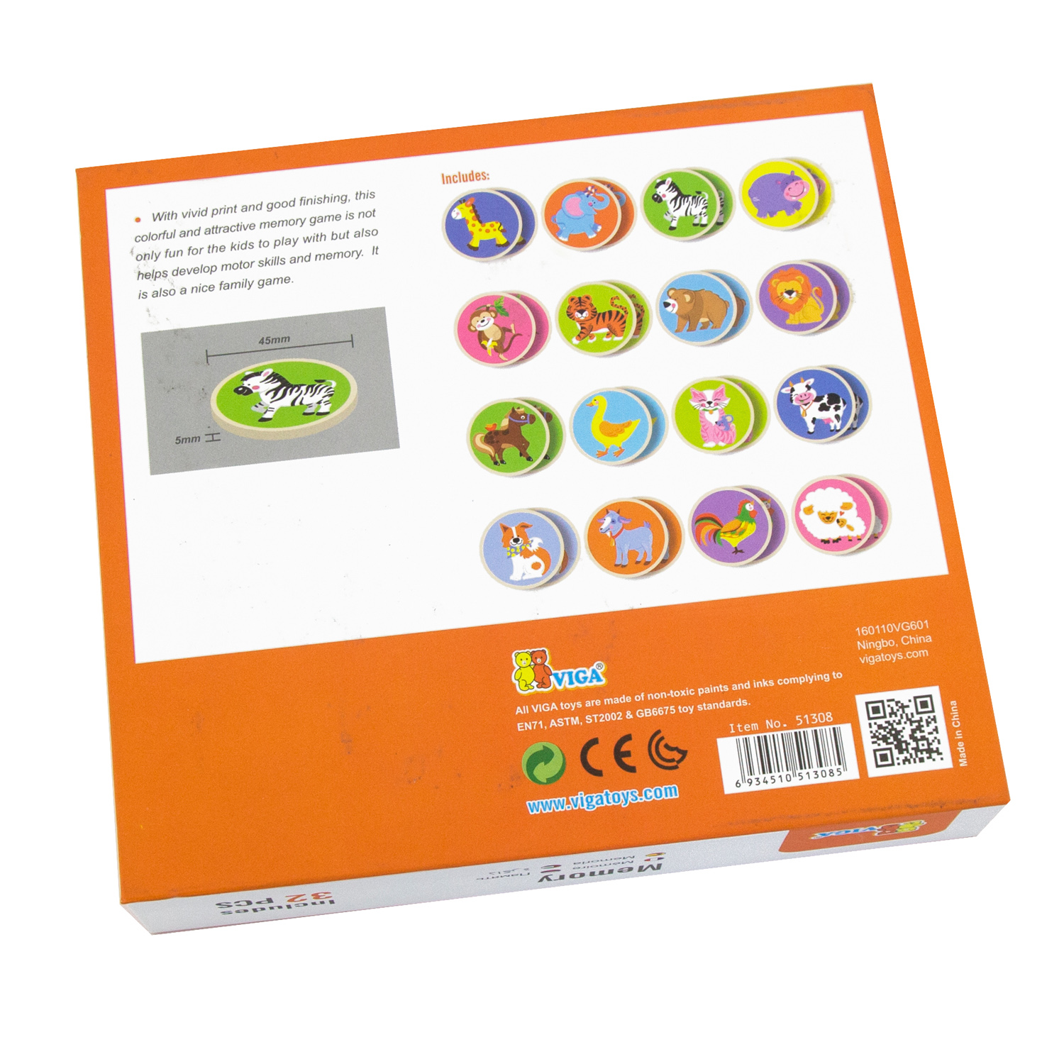 -This memory game includes 32 wooden pieces with nice animal printing. Packed in a nice magnetic cardboard box for easy storage.