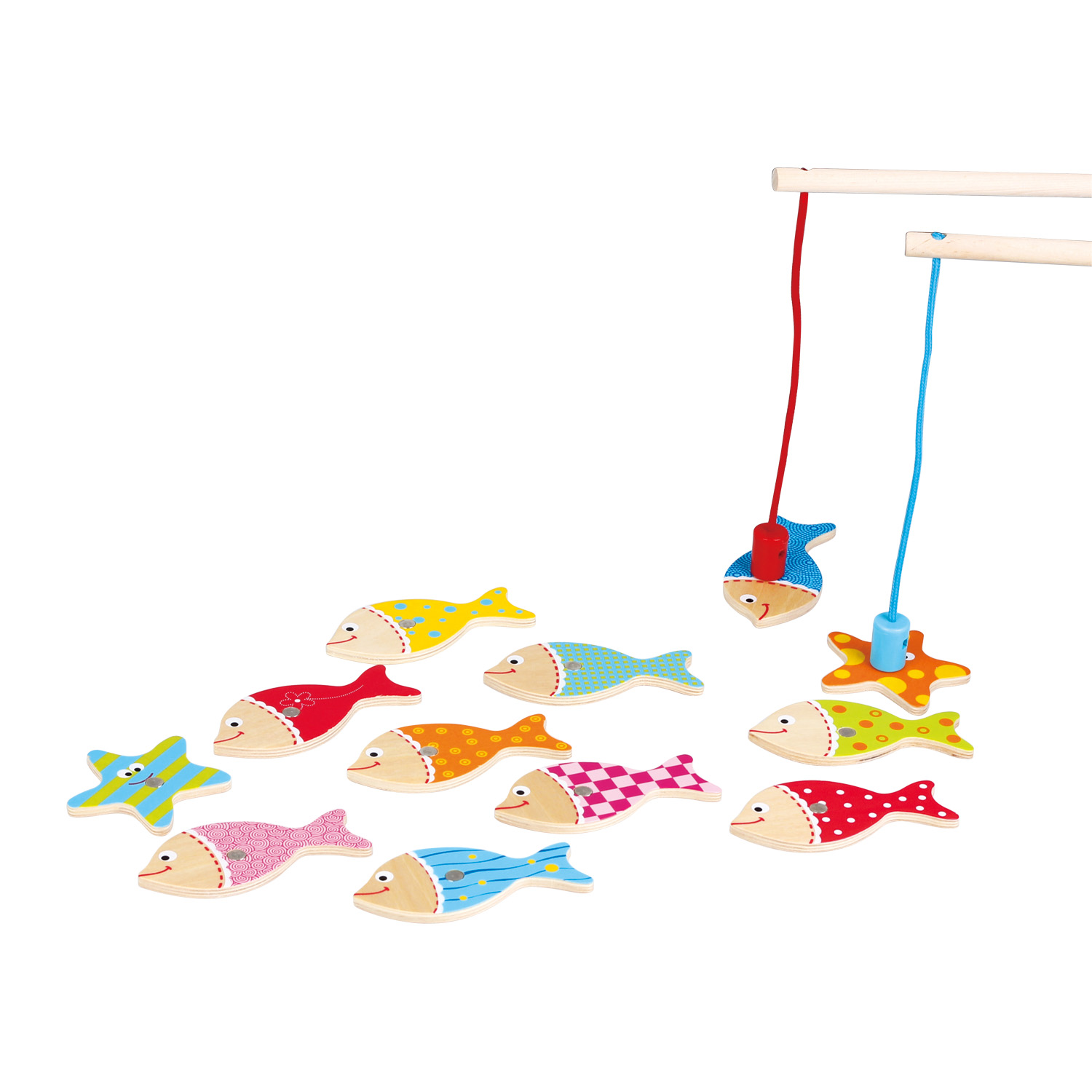 Includes: 12 wooden sea animals, 2 magnetic fishing rods