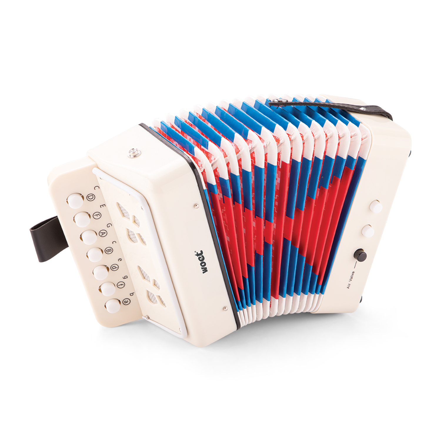 This toy accordion from New Classic Toys is a fantastic way to introduce little ones to the wonderful world of making music. Perfect for encouraging melody makers, or just having fun making lots of noise. This scaled-down toy version of a real accordion features a classic design with a bright and colorful finish. It has two bass buttons, one bass side air button and seven treble in C.