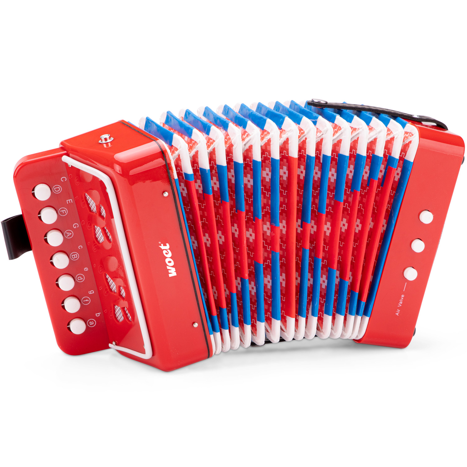 This toy accordion from New Classic Toys is a fantastic way to introduce little ones to the wonderful world of making music. Perfect for encouraging melody makers, or just having fun making lots of noise. This scaled-down toy version of a real accordion features a classic design with a bright and colorful finish. It has two bass buttons, one bass side air button and seven treble in C.